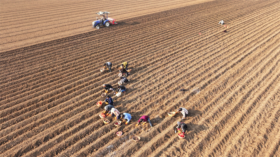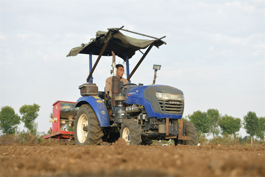 10月30日,镇平县侯集镇赵丽种植农民专业合作社的种植基地里,起垄机正在田间作业。