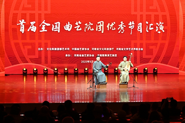 新华网郑州9月21日电 9月19日至20日,首届全国曲艺院团优秀节目汇演在河南郑州举行。来自全国21个省(自治区、直辖市)的26家曲艺院团、210余名演员、27个优秀曲艺节目齐聚中原,集中展示了我国曲艺艺术百花齐放的繁荣景象,展现了传统曲艺在当代的传承与发展。