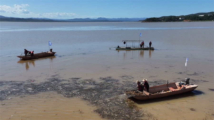 “进入9月以来,丹江水库进入秋汛,大量枯枝、杂草等杂物顺水流入丹江,如果不及时清理,会导致水体富氧化,滋生有害微生物。”淅川县地方海事航务中心办公室主任张国普介绍说,“为应对此次秋汛带来的漂浮物,我们每天组织清漂员90余人,大小船只30余艘,在库区开展清漂工作。”