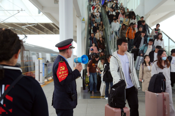 “我们提前对车站客运设施设备进行检修保养,在客流高峰时段及时增开售票和安检验证通道,增派人员在天桥、地道、站台、电梯等关键处所加强宣传引导和重点帮扶,保障旅客出行安全。”南阳东站客运值班员侯柯介绍说。