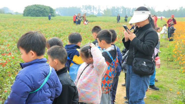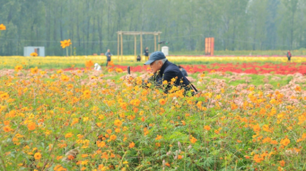 游客在“天边花海”园区的花丛中拍照留影。(驻马店市驿城区委宣传部供图)
