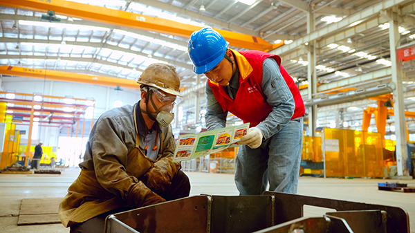 国网濮阳供电公司工作人员向企业工人讲解安全用电常识。