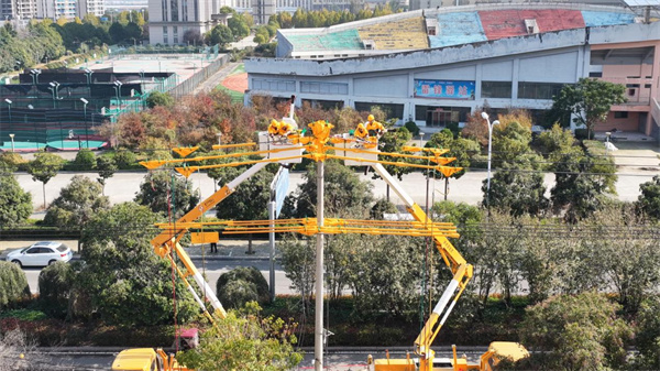 11月3日,在商丘市宁陵县10千伏石宾线,国网宁陵县供电公司工作人员正在进行带电作业。
