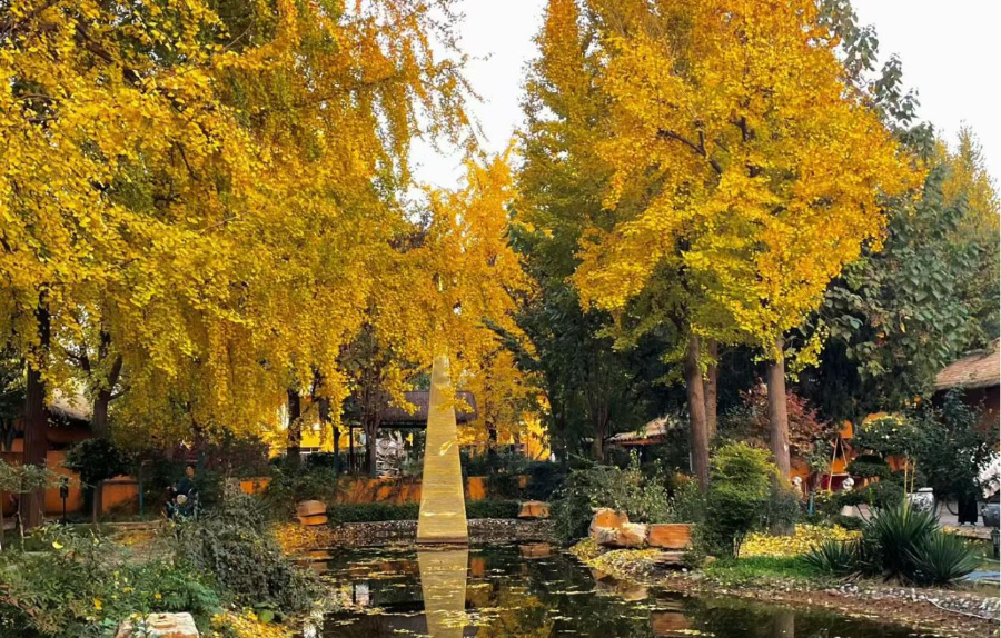 在滑县枣村乡堤上村白马林谷银杏小院,金黄的银杏叶在阳光下熠熠生辉,游客漫步其中,宛如步入金色画卷,纷纷驻足拍照。非遗文创体验区内,传统技艺展示与特色农产品展销让游客在互动中感受传统文化魅力,实现“赏景、品文化、购特产”有机融合。(席瑞娜/文 任嘉伟/图)