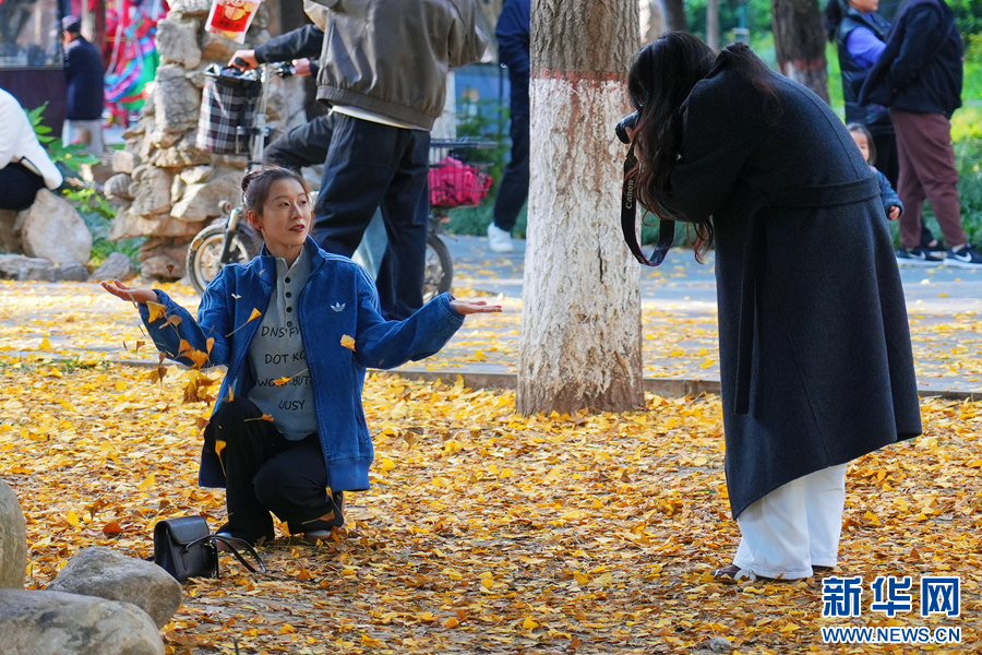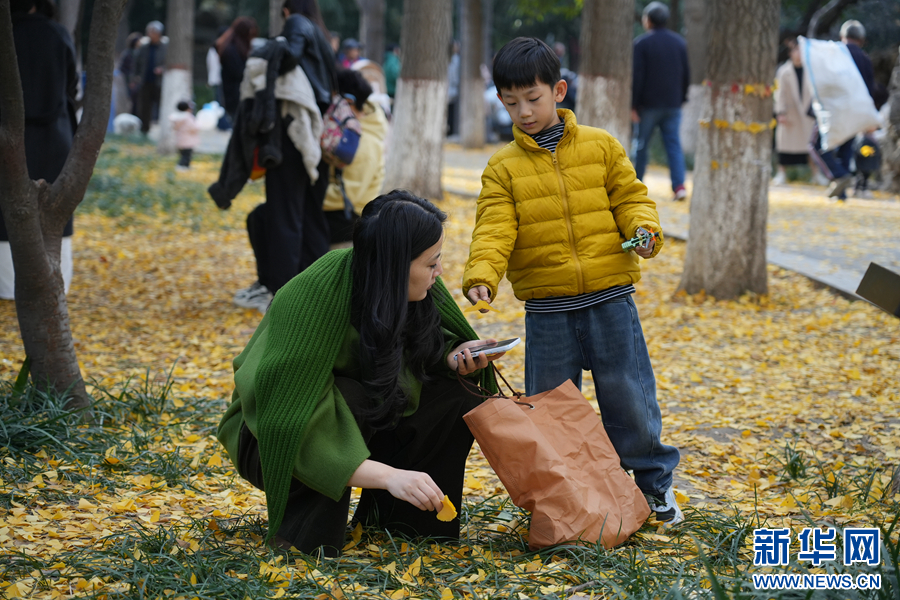 初冬时节,河南省南阳市人民公园、申伯公园内,一幅幅金黄色的画卷悄然铺展,吸引市民驻足银杏树下,欣赏美景,记录美好瞬间。(吴双 王浩)