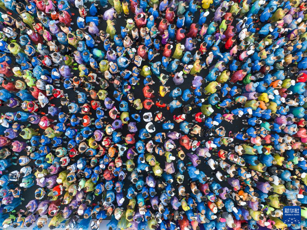 11月16日,参赛选手在比赛中起跑(无人机照片)。