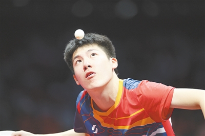 11月15日,在澳门举行的第十五届全国运动会乒乓球男子18岁以下单打金牌赛中,河南队选手温瑞博4比1战胜上海队选手周锦泉,夺得冠军。 新华社记者 梁旭 摄
