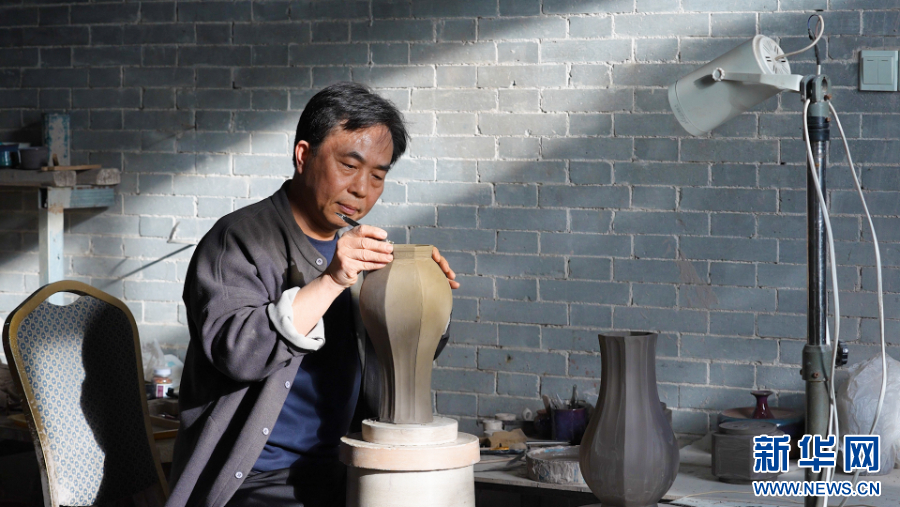 图为孔春生在修坯。王晓飞 摄