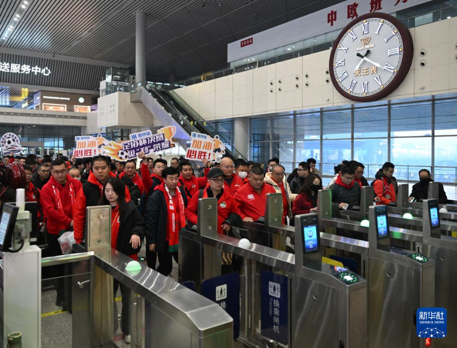 12月6日,河南俱乐部酒祖杜康队球迷在郑州东站检票进站。新华社记者 李嘉南 摄