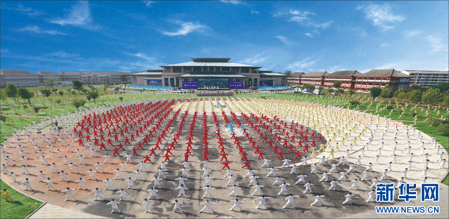 太极拳爱好者在温县陈家沟表演太极拳。