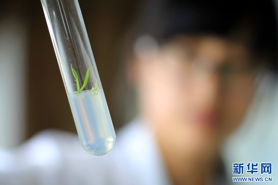 温县农业科学研究所的工作人员在查看脱毒种苗生长情况。