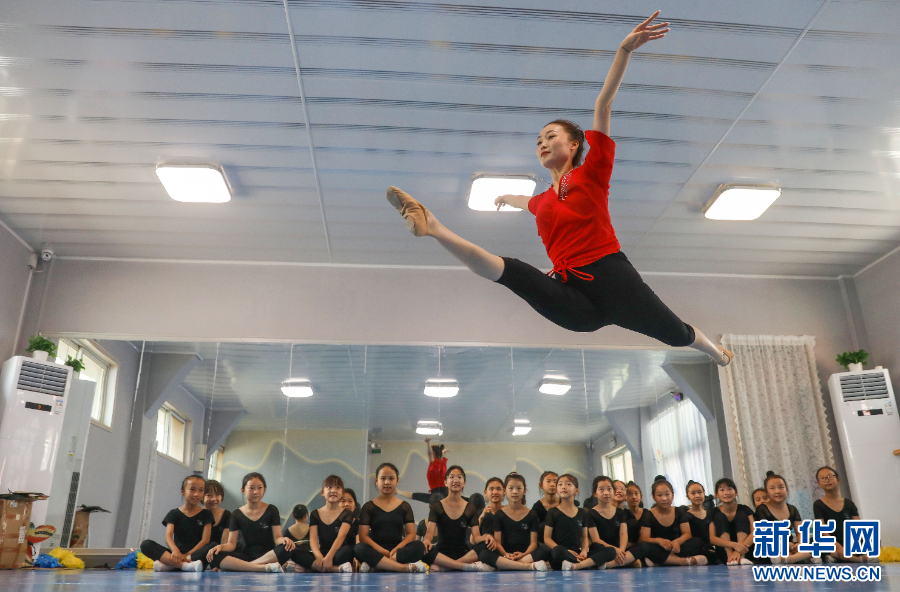在河南省宝丰县一家舞蹈培训机构,老师为小朋友展示舞蹈动作。