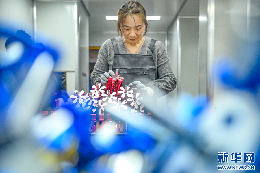 在河南省商丘市夏邑县会亭镇西街东村的一家打火机配件厂机壳镀膜车间,工人在查看产品质量。