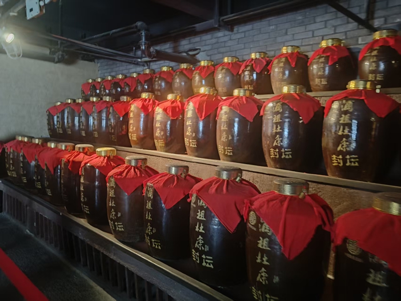 图为洛阳杜康控股有限公司玄武古窖中陈列的封坛酒。(郜骏雅 摄)