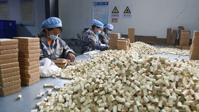 图为河南三才艾业有限公司艾草产品生产车间。(汝阳县融媒体中心供图)