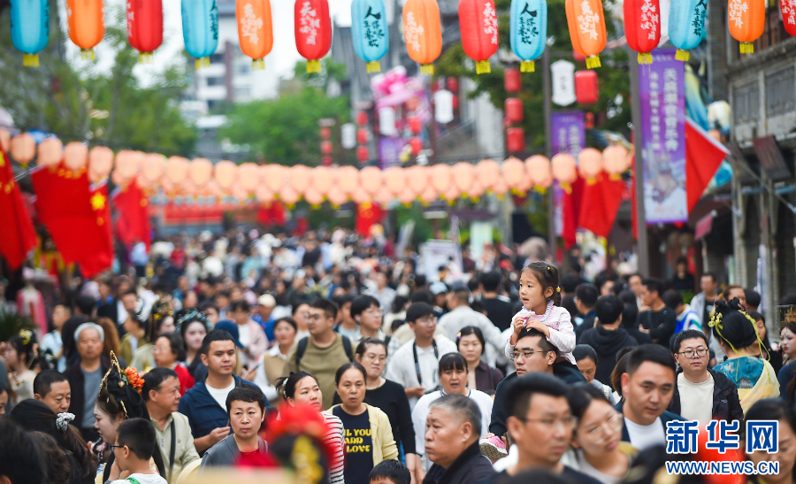 这是2025年10月2日,游客在河南省洛阳市老城区历史文化街区洛邑古城景区休闲游玩。新华社发(黄政伟 摄)