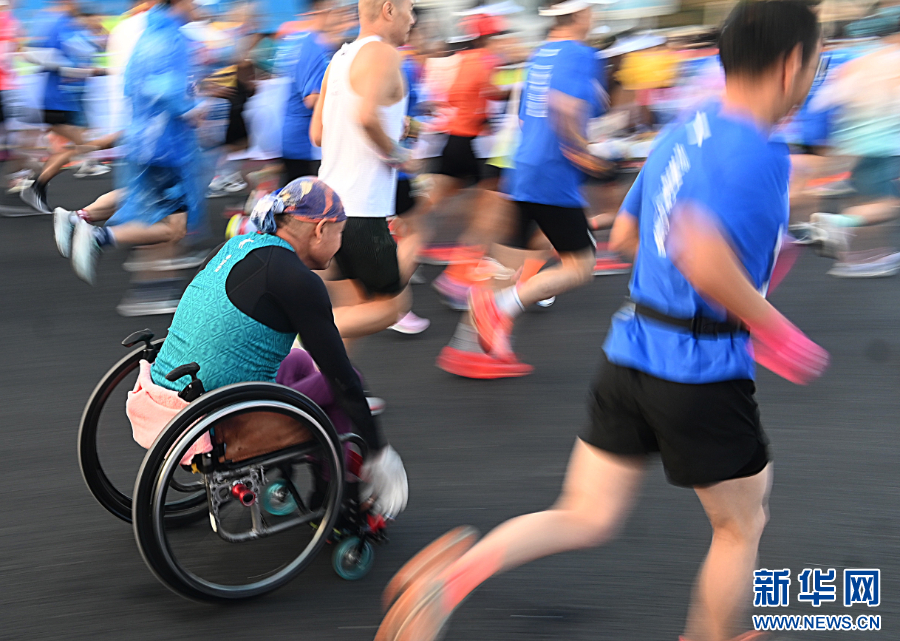 2025年11月16日,参赛选手从起点出发(无人机照片)。当日,2025郑州马拉松在郑州市郑东新区如意湖畔鸣枪开跑。比赛设置马拉松、半程马拉松两个项目,共有近2.5万人参赛。新华社发(麻翛然 摄)