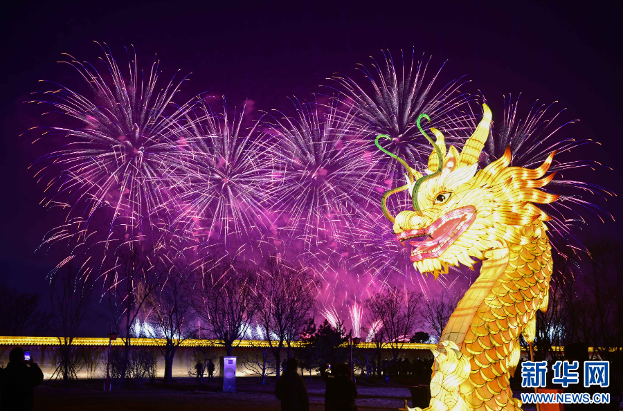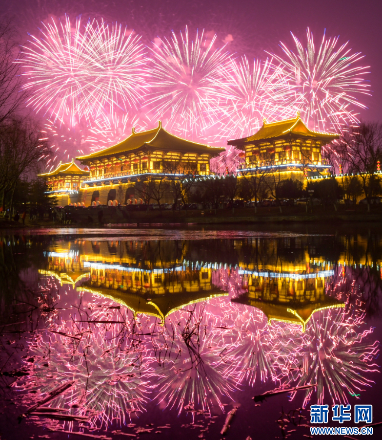 这是2025年1月29日在河南省洛阳市定鼎门拍摄的烟花。新华社发(张怡熙 摄)