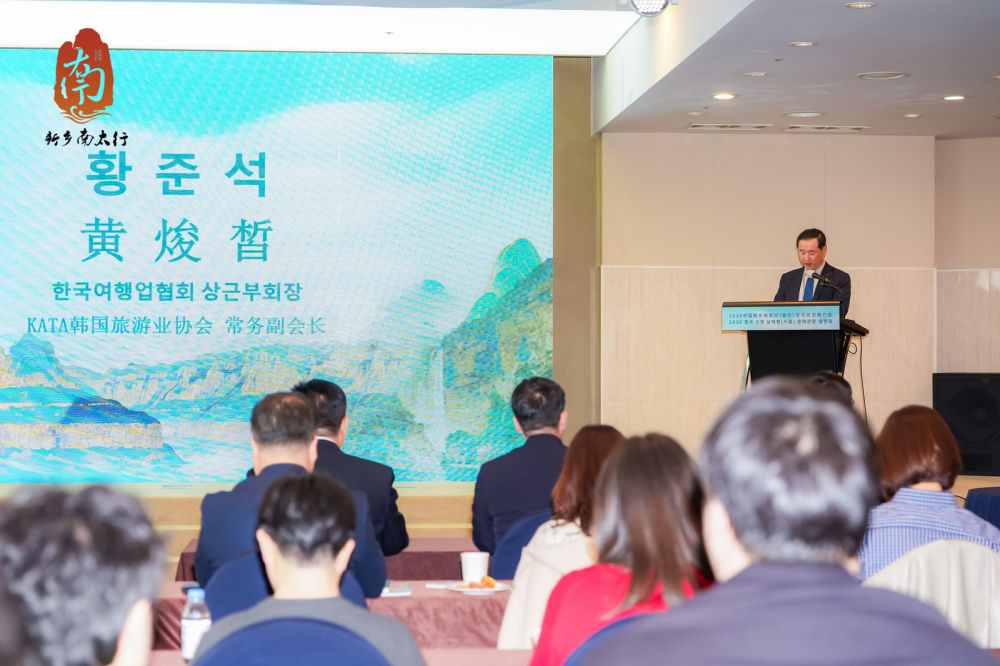 新乡南太行旅游有限公司营销总监岳学振在致辞中表示,南太行与韩国早已结下深厚情谊。其中,被誉为“太行第一峰”的天界山,连续多年获评韩国游客最喜爱的中国旅游目的地之一。他说,今年4月,“首尔—新乡南太行”旅游包机即将开通,这将为两国游客搭建起更便捷、更高效、更舒适的空中走廊,未来,新乡南太行将打造“韩国游客来华的首选目的地”,并探索在文旅投资、服务配套等领域合作共赢,实现资源共享、市场共拓、品牌共创。