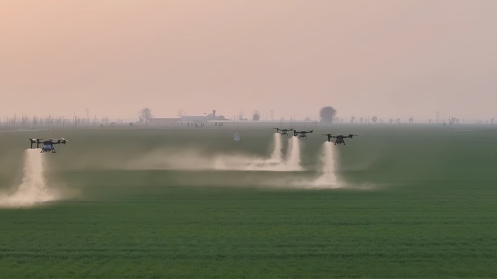 近期鹤壁雨水充沛、气温回升,虽然有利于麦苗生长,但也一定程度上增加了病虫害的发生风险。在浚县30万亩高标准农田示范方内,植保无人机正匀速穿梭在麦田上空,按照预设航线进行精准喷洒作业,以提升麦苗整体质量,促弱转壮。