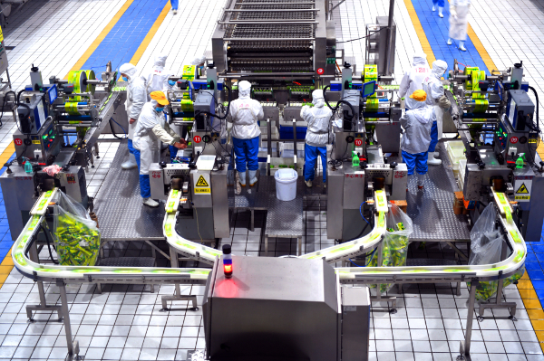 图为正在运行的河南省淇航食品有限公司的冰淇淋生产线。(袁国强 摄)