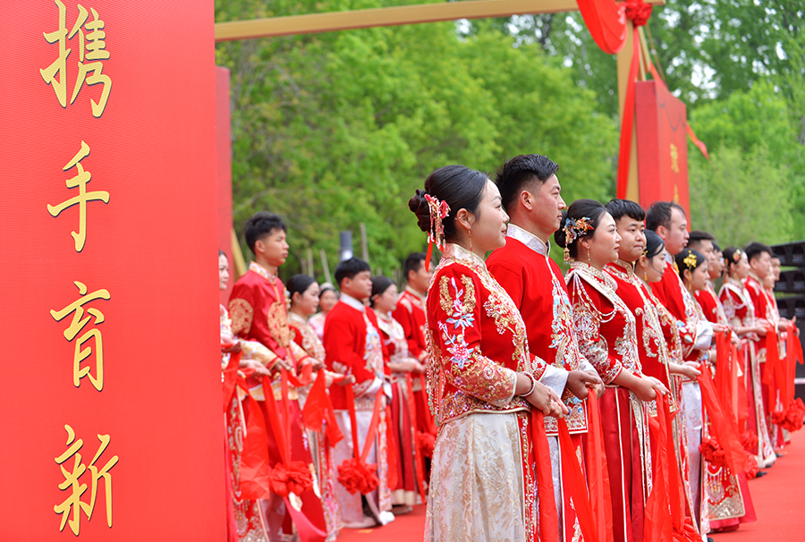 4月8日,“豫鲁联姻”2026年中式集体婚礼暨新风青年派对活动现场。