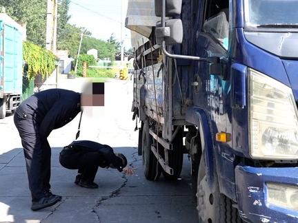 环保执法人员抽检了50辆货车,在其中一辆刚从广州拉货返回的重型货车上,发现了被加装在排气管温度传感器上的螺丝。