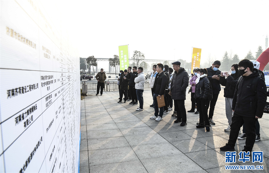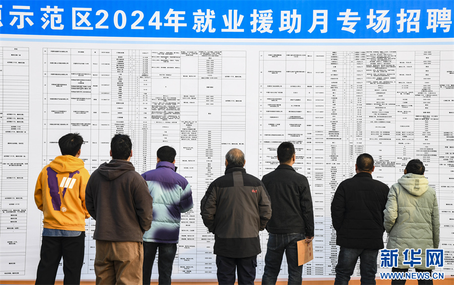 1月12日,河南省济源市2024年就业援助月专场招聘会现场,求职者在了解岗位信息。