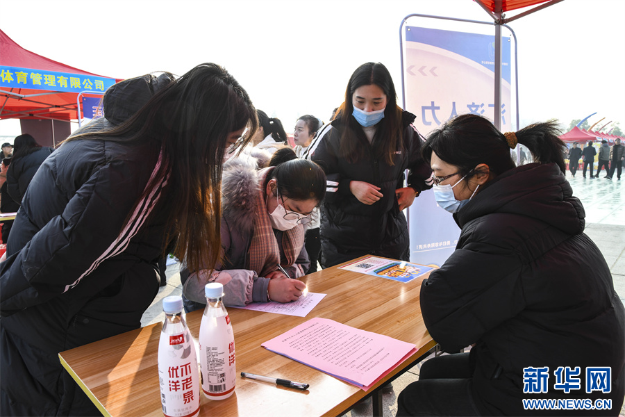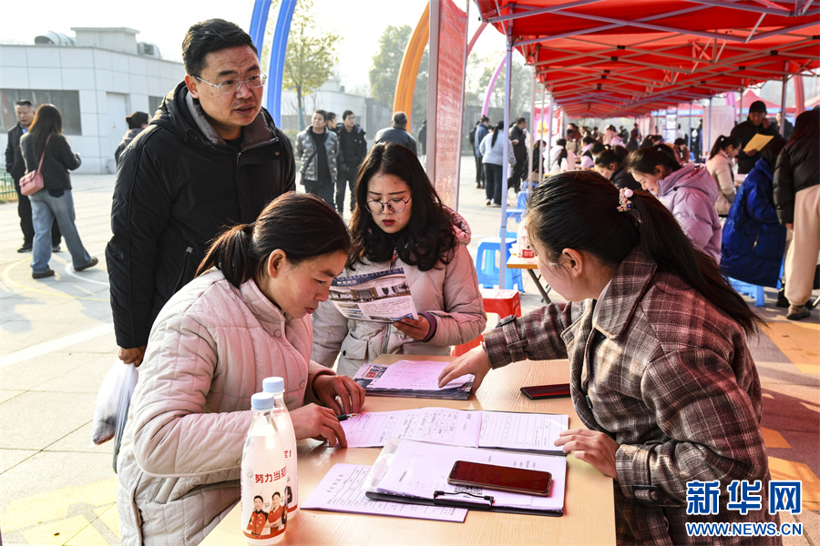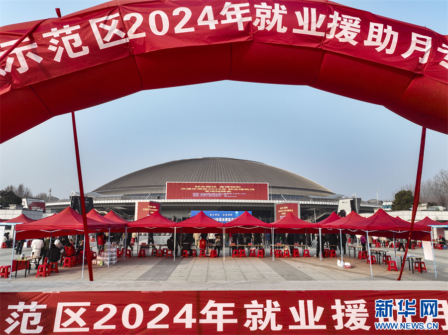 这是1月12日拍摄的河南省济源市2024年就业援助月专场招聘会现场。