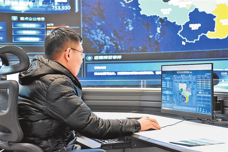 技术人员检查周口市智慧城市运营指挥中心调度平台运行情况。卢涛 摄