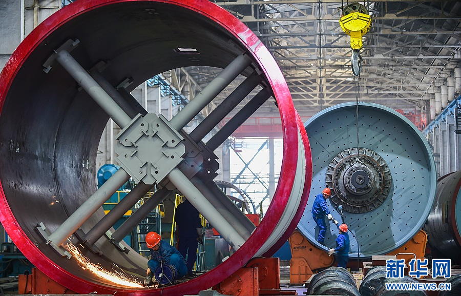 2月18日,河南省洛阳市,中信重工的工人正在车间赶制订单产品。(黄政伟 摄)