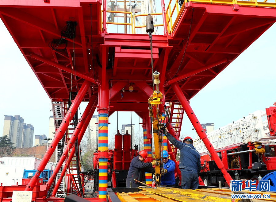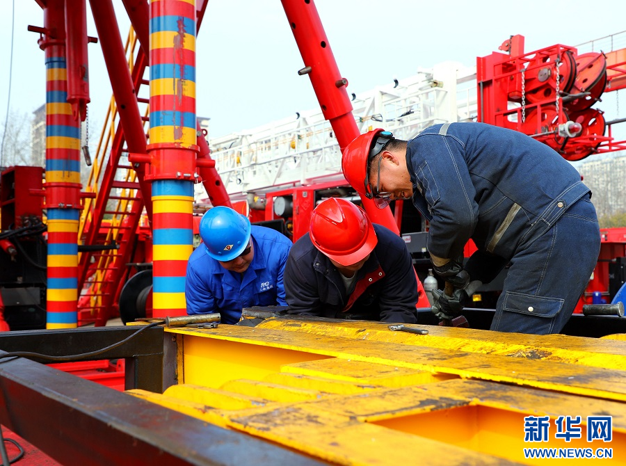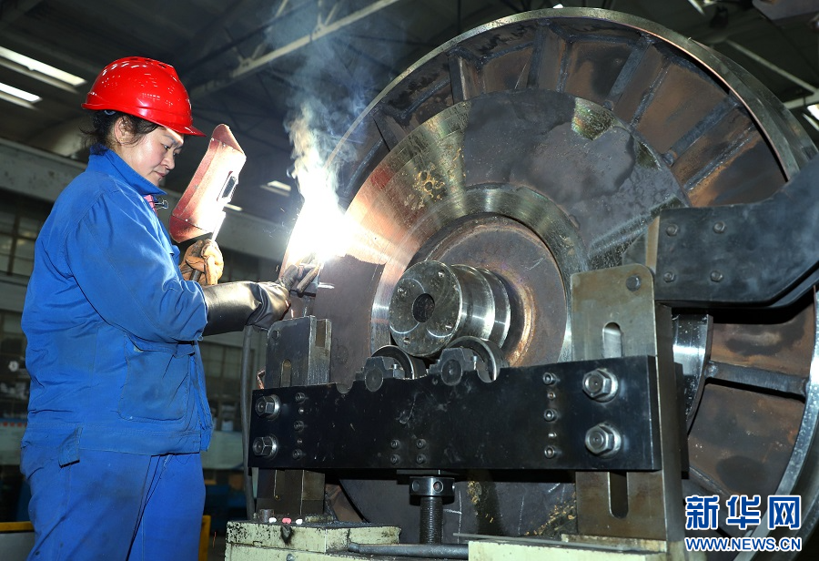 2月18日,河南省南阳市,一家石油装备公司的工人在产品试验区作业。(高嵩 摄)
