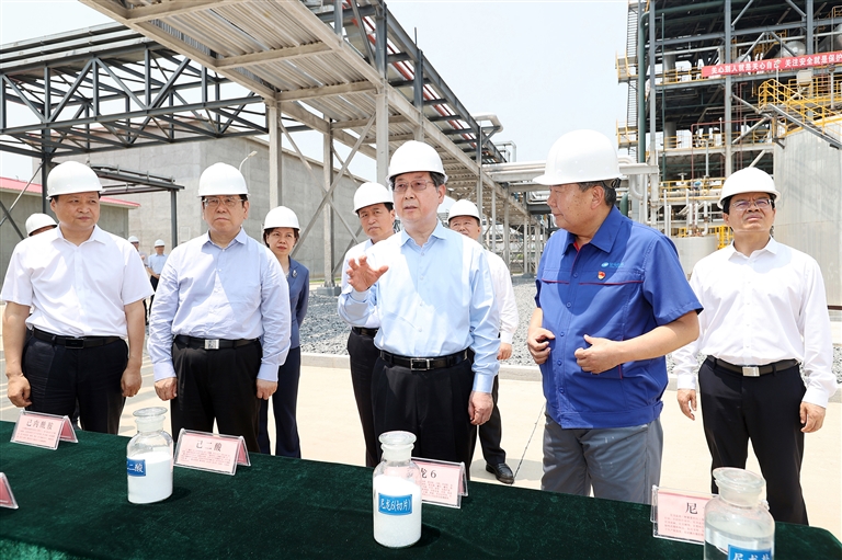 七月十一日,全省第十三期“三个一批”项目建设活动主会场设在济源示范区。省委书记楼阳生、省长王凯出席并到河南金源氢化年产二十万吨苯加氢项目,调研投产项目情况。本报记者 董亮 蔡迅翔 摄