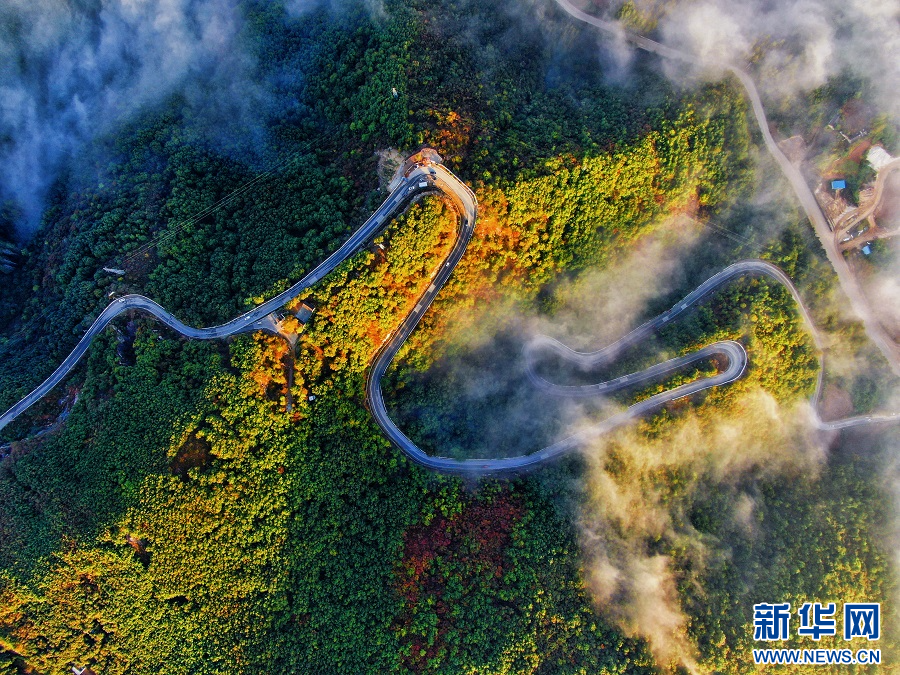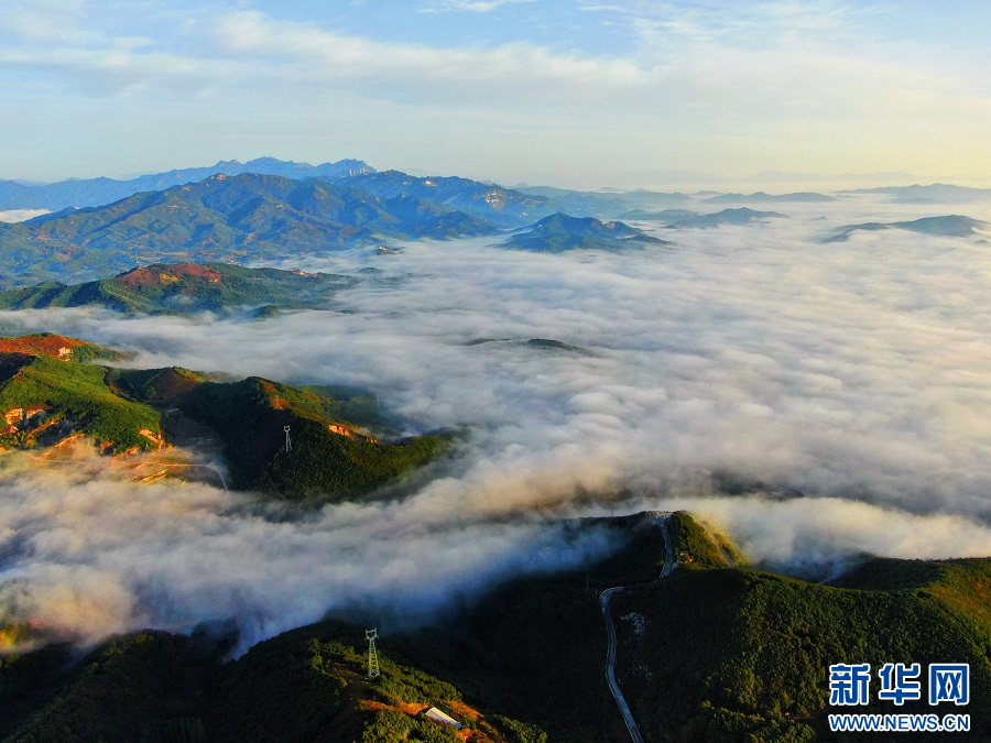 10月22日清晨,河南省南阳市镇平县北部杏花山出现云海景观。山峰在云海中若隐若现,宛如一幅别具韵味的水墨画。(李树娴 时君洋)