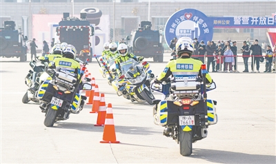 交警摩托铁骑因机动灵活,日常在救助群众、处理交通事故、缓解交通拥堵、查处交通违法中起到重要作用,这次在警营开放日的现场,他们也为市民群众带来一场警用摩托车特技展示。绕桩、花式绕桩、隐藏式驾驶、驾驶中捡拾包裹、驾驶摩托车立姿敬礼、驾驶摩托车立姿射击……身法轻盈,动作帅气,一气呵成,惊险刺激,一系列高难度动作赢得观众如雷般掌声。