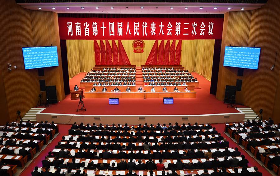 1月18日,河南省十四届人大三次会议在河南省人民会堂开幕。(新华社记者 张浩然 摄)