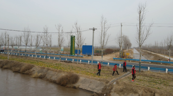 2月18日,原阳县韩董庄引黄灌区志愿服务队正在巡河。闫丽莎 摄
