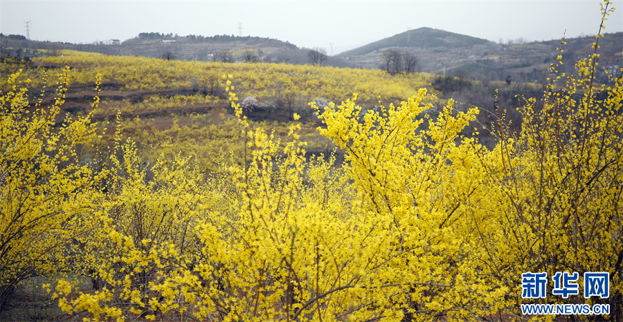 3月30日,嵩县何村镇姜岭村,盛开的连翘花。(王红强 摄)
