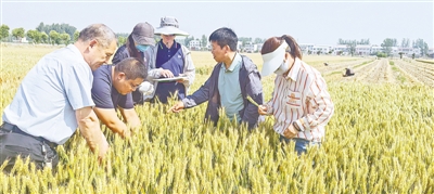 在狼城岗镇、大孟镇、万滩镇的连片成方麦田里,来自郑州市农科所、河南农业职业学院的专家们,正在开展“一喷三防”效果评估。专家们头顶烈日,两两一组,有普查有记录。
