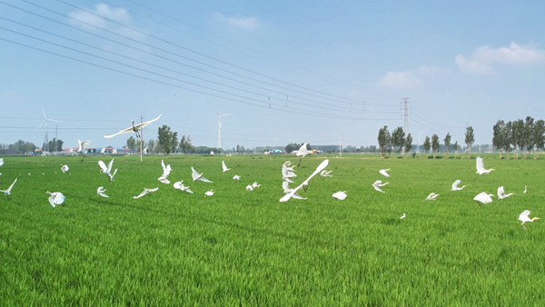 成群白鹭与稻田相映成趣。(原阳县委宣传部供图)