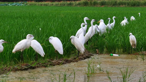据原阳县委宣传部消息,近年来,原阳县持续推进生态保护,大力推广农业绿色种植,减少化肥、农药使用,加大湿地、河流生态修复力度。水质提升,稻田中鱼虾、昆虫数量增加,为白鹭等水鸟提供了适宜的生存环境。每到白鹭活动季节,成群白鹭时而振翅高飞,时而俯身觅食,与绿油油的稻田构成了一幅灵动的田园画卷。(王彬宇 范瑞琪 闫丽莎)