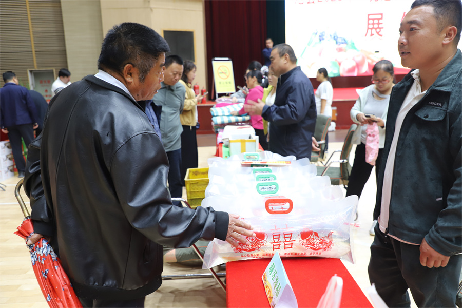 9月23日,范县农特产品展销会现场,一名顾客在购买商品。