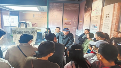 10月3日,88岁的考古学家杨育彬在郑州商代都城遗址博物院,为现场观众讲解杜岭一号方鼎。 杨向明 摄