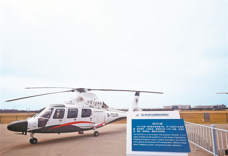 AC312E直升机亮相天津直博会静态展。 中国飞龙通用航空有限公司供图