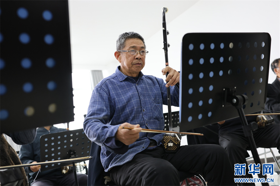 10月29日,在内黄县老干部教育活动中心,一名学员在进行二胡演奏。