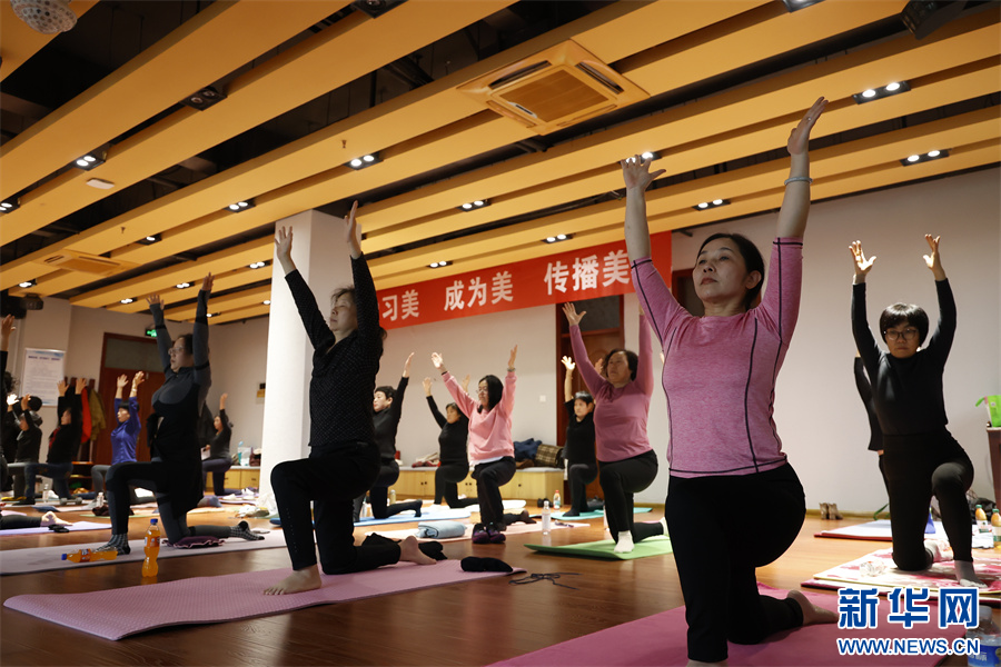 10月29日,在内黄县老干部教育活动中心,学员们正在进行瑜伽训练。