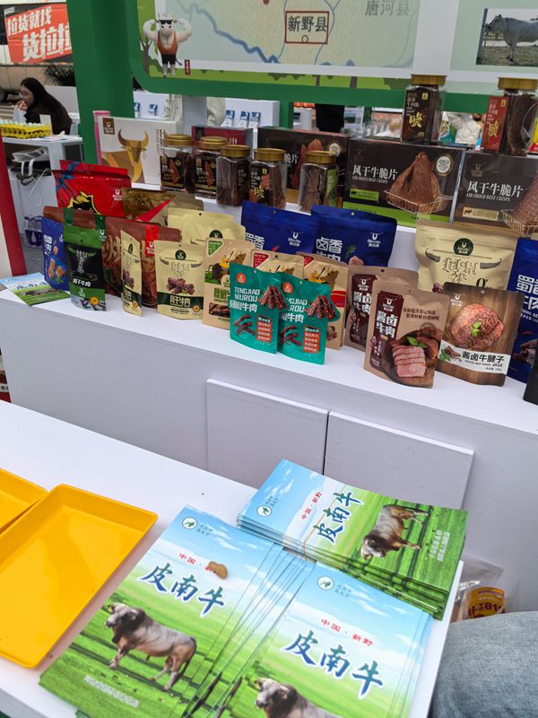 11月6日,在2025中原农谷种业大会上,河南新野县展示的牛肉制品。新华社记者马意翀 摄