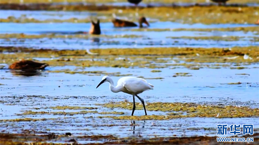 11月5日,在南阳市镇平县赵湾水库,白鹭在浅滩悠然踱步。(时君洋 摄)