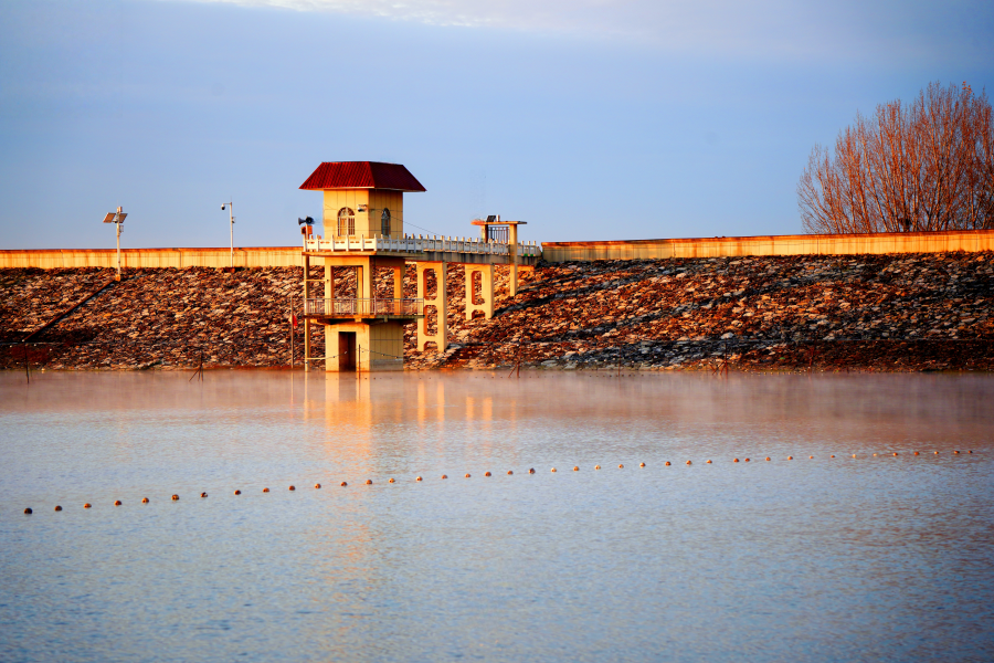 11月18日,晨光初现,在河南省南阳市镇平县高丘水库,水面浮光跃金,晨雾如轻纱漫舞,与绚烂朝霞交织,绘就一幅壮阔灵动的自然画卷。(黄磊磊 王庆/文 时君洋/视频)
