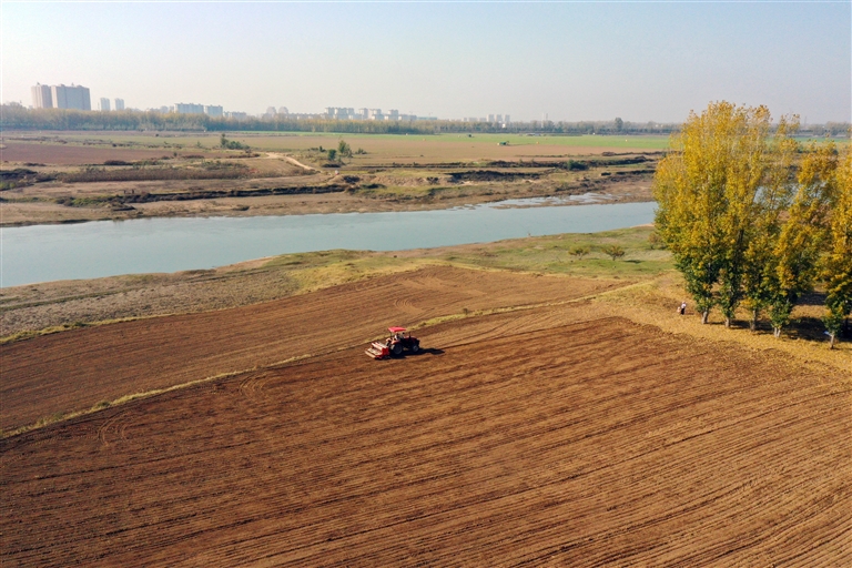 11月16日,沁阳市太行街道东沁阳村农民驾驶农机在田间播种小麦。杨帆 胡国礼 摄